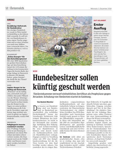 Tierärztekammer entwarf einheitliches Zertifikat als Prophylaxe gegen Attacken. Schulung von Tierärzten startet in Salzburg.