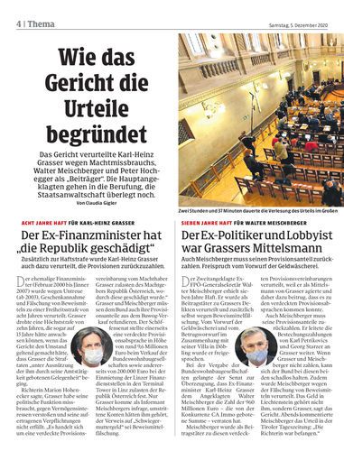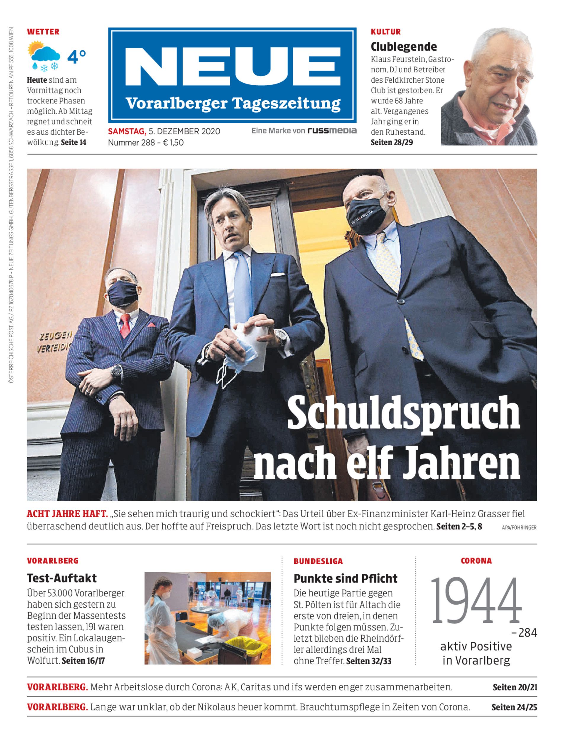 Acht Jahre Haft. „Sie sehen mich traurig und schockiert“: Das Urteil über Ex-Finanzminister Karl-Heinz Grasser fiel überraschend deutlich aus. Der hoffte auf Freispruch. Das letzte Wort ist noch nicht gesprochen. Seiten 2–5, 8 APA/FÖHRINGER