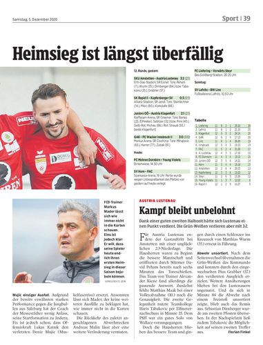 Dank einer guten zweiten Halbzeit hätte sich Lustenau einen Punkt verdient. Die Grün-Weißen verlieren aber mit 3:2.