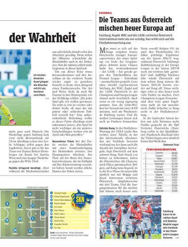 Salzburg, Rapid, WAC und der LASK vertreten Österreich international mehr als nur würdig. Das wirkt sich auf die Fünfjahreswertung aus.