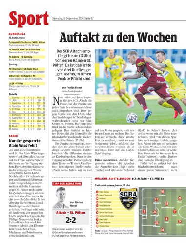 Der SCR Altach empfängt heute (17 Uhr) vor leeren Rängen St. Pölten. Es ist das erste von drei Duellen gegen Teams, in denen Punkte Pflicht sind.