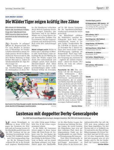 Der EHC hat heute Klagenfurt zu Gast, morgen Jesenice. Die VEU tritt heute in Linz an.