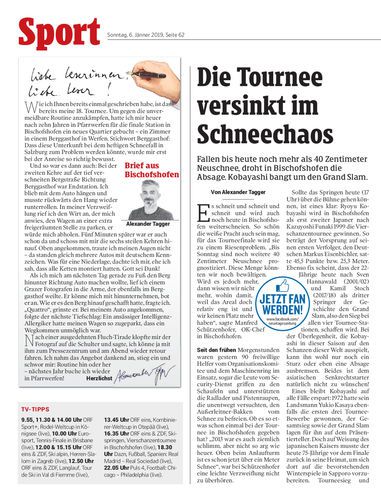 Fallen bis heute noch mehr als 40 Zentimeter Neuschnee, droht in Bischofshofen die Absage. Kobayashi bangt um den Grand Slam.