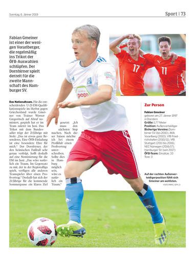 Fabian Gmeiner ist einer der wenigen Vorarlberger, die regelmäßig ins Trikot der ÖFB-Auswahlen schlüpfen. Der Dornbirner spielt derzeit für die zweite Mannschaft des Hamburger SV.