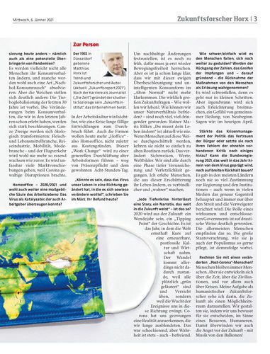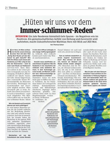Ein Jahr Pandemie hinterließ tiefe Spuren – im Negativen wie im Positiven. Ein gemeinschaftliches Gefühl von Heilung und Zuversicht wird aufstehen, macht Zukunftsforscher Matthias Horx mit Blick auf 2021 Mut. Von Thomas Golser