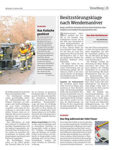 Klage, weil Pizza-Zusteller mit Auto beim Umkehren über Vorplatz von fremdem Privatgrundstück fuhr.