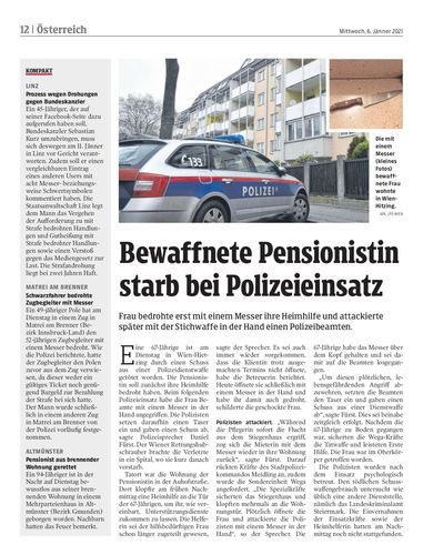 Frau bedrohte erst mit einem Messer ihre Heimhilfe und attackierte später mit der Stichwaffe in der Hand einen Polizeibeamten.