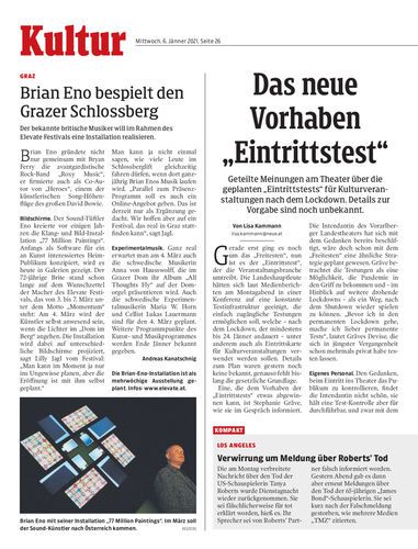 Geteilte Meinungen am Theater über die geplanten „Eintrittstests“ für Kulturveranstaltungen nach dem Lockdown. Details zur Vorgabe sind noch unbekannt.