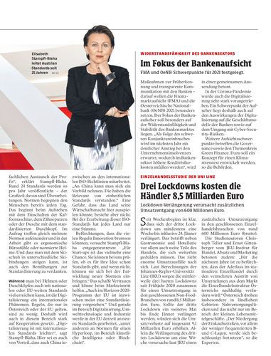 FMA und OeNB: Schwerpunkte für 2021 festgelegt.