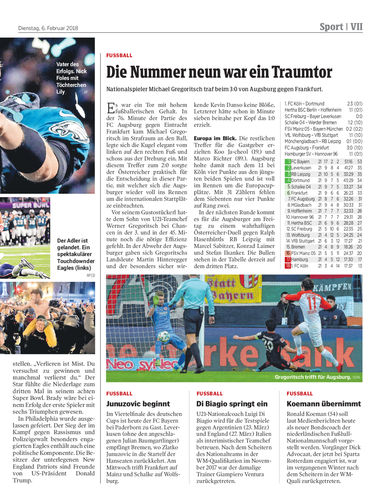 Nationalspieler Michael Gregoritsch traf beim 3:0 von Augsburg gegen Frankfurt.