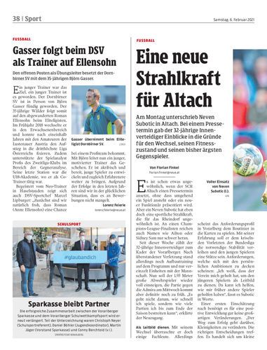 Den offenen Posten als Übungsleiter besetzt der Dornbirner SV mit dem 35-jährigen Björn Gasser.