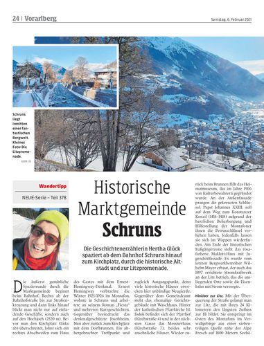 Die Geschichtenerzählerin Hertha Glück spaziert ab dem Bahnhof Schruns hinauf zum Kirchplatz, durch die historische Altstadt und zur Litzpromenade.