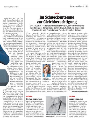 Erst 50 Jahre Frauenstimmrecht Schweiz: „Ein unrühmliches Kapitel in der Demokratie-Entwicklung“, sagt die Schweizer Publizistin und Feminismus-Forscherin Isabel Rohner.