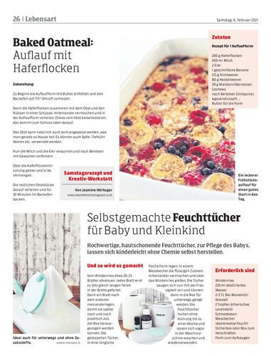 Hochwertige, hautschonende Feuchttücher, zur Pflege des Babys, lassen sich kinderleicht ohne Chemie selbst herstellen.