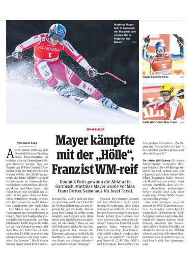 Dominik Paris gewinnt die Abfahrt in Garmisch. Matthias Mayer wurde vor Max Franz Dritter. Saisonaus für Josef Ferstl.