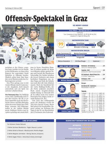 Spielbericht. Die Bulldogs spielen sich in Graz in einen Rausch, gewinnen 7:1 und erzielen, man glaubt es kaum, drei Powerplay-Tore. Mann des Abends ist Geburtstagskind William Rapuzzi mit vier Treffern.