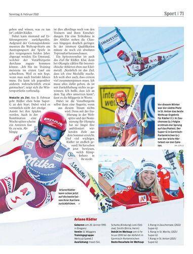 Seit langer Zeit konnte Ariane Rädler wieder eine komplette Vorbereitung mitmachen. Dies resultierte in den besten Ergebnissen der 27-Jährigen aus Möggers und der Nominierung für Olympia.