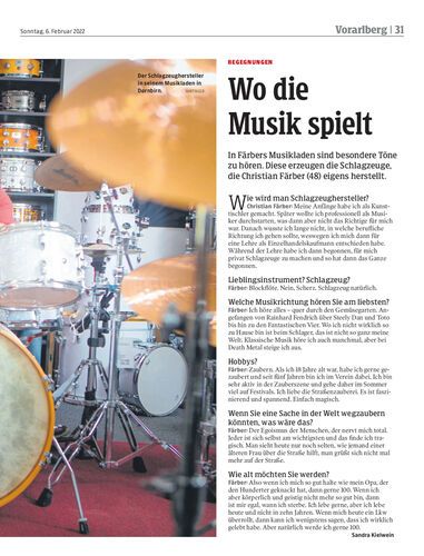 In Färbers Musikladen sind besondere Töne zu hören. Diese erzeugen die Schlagzeuge, die Christian Färber (48) eigens herstellt.