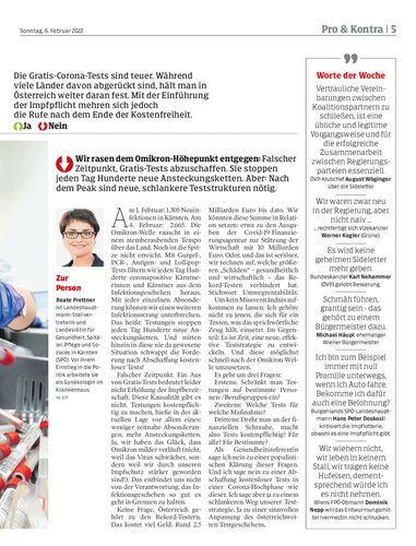 Österreich ist Test-Weltmeister. Aber muss die Allgemeinheit wirklich dafür aufkommen, dass sich jemand, der die Impfung verweigert, für das Schnitzerl freitesten kann? Schluss mit der „Koste es, was es wolle“-Mentalität!