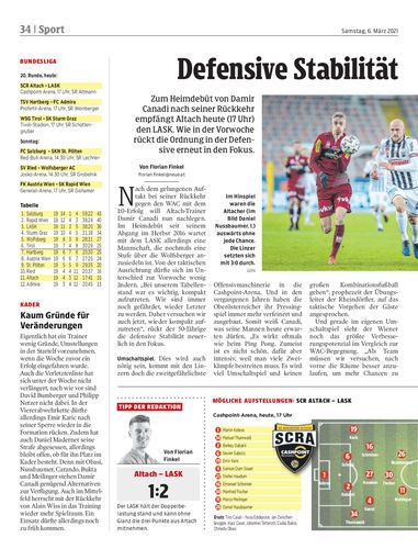 Zum Heimdebüt von Damir Canadi nach seiner Rückkehr empfängt Altach heute (17 Uhr) den LASK. Wie in der Vorwoche rückt die Ordnung in der Defensive erneut in den Fokus.