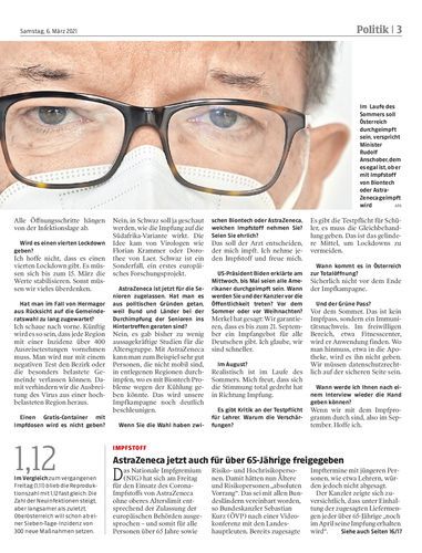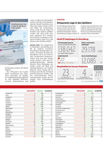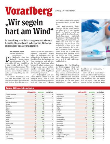 Vorarlberg. AstraZeneca wird nun auch an über 65-Jährige verimpft. Das heißt, dass diese Personengruppe bis im April durchgeimpft sein könnte. In Vorarlberg hilft die Zulassung auch für die geplante Öffnung. Seiten 3, 16/17 AP