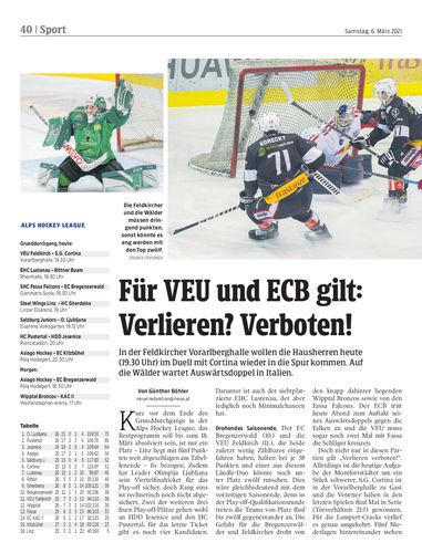 In der Feldkircher Vorarlberghalle wollen die Hausherren heute (19.30 Uhr) im Duell mit Cortina wieder in die Spur kommen. Auf die Wälder wartet Auswärtsdoppel in Italien.