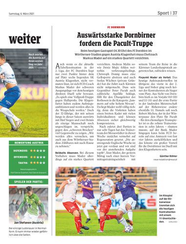 Beim heutigen Gastspiel (14.30 Uhr) des FC Dornbirn im Wörthersee-Stadion gegen Austria Klagenfurt muss Chefcoach Markus Mader auf ein starkes Quartett verzichten.