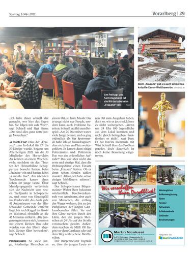 Das Gasthaus „Zum Fraaanz“ in Schoppernau ist der neue Treffpunkt für Bregenzerwälder Jugendliche. Was die einen freut, ist für andere sehr beschwerlich.