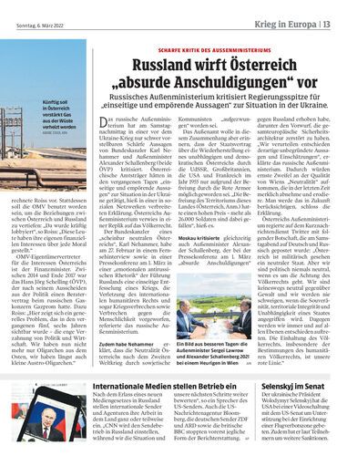 Schranz verurteilt Russlands Invasion „auf das Schärfste“