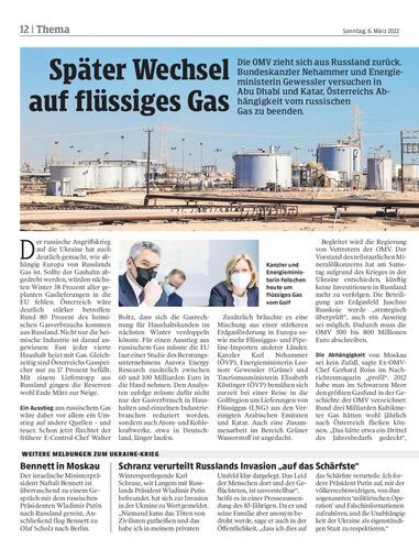 Die OMV zieht sich aus Russland zurück. Bundeskanzler Nehammer und Energieministerin Gewessler versuchen in Abu Dhabi und Katar, Österreichs Abhängigkeit vom russischen Gas zu beenden.