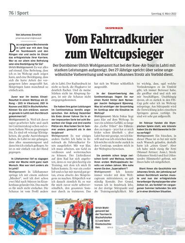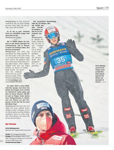 Der Dornbirner Ulrich Wohlgenannt hat bei der Raw-Air-Tour in Lahti mit starken Leistungen aufgezeigt. Der 27-Jährige spricht über seine ungewöhnliche Vorbereitung und warum Johannes Strolz als Vorbild dient.