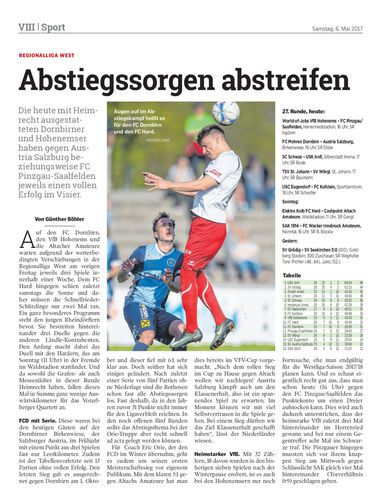 Die heute mit Heimrecht ausgestatteten Dornbirner und Hohenemser haben gegen Austria Salzburg beziehungsweise FC Pinzgau-Saalfelden jeweils einen vollen Erfolg im Visier.