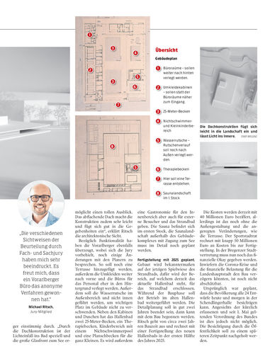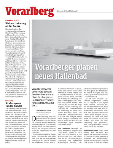 Bregenz. Der Sieger des Architektur-Wettbewerbs für das Bregenzer Hallenbad kommt aus Vorarlberg. Die Pläne haben die Jury überzeugt. Nun fehlt noch die Zustimmung zur Finanzierung durch die Stadtvertretung. Seiten 14/15 Stadt Bregenz