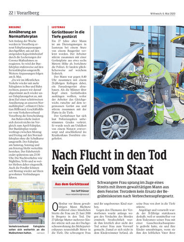 Schwangere Frau sprang im Zuge eines Streits mit ihrem gewalttätigen Mann aus dem Fenster. Trotzdem kein Ersatz der Begräbniskosten nach Verbrechensopfergesetz.