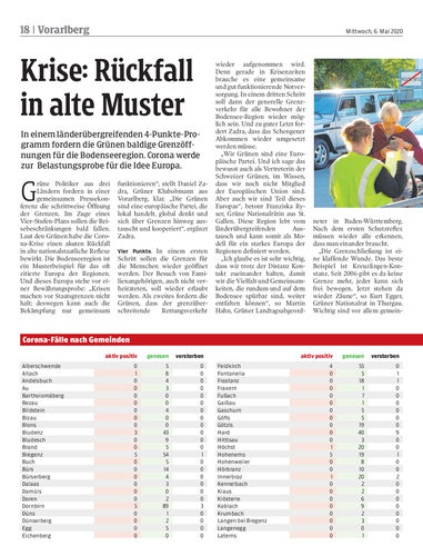 In einem länderübergreifenden 4-Punkte-Programm fordern die Grünen baldige Grenzöffnungen für die Bodenseeregion. Corona werde zur Belastungsprobe für die Idee Europa.