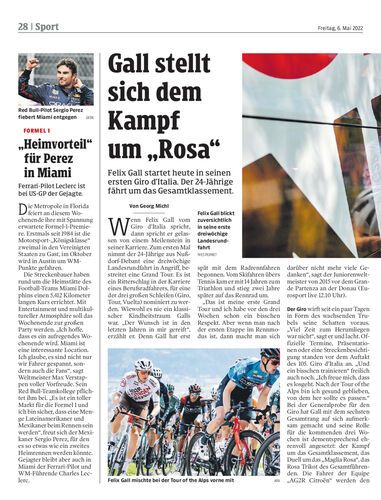 Felix Gall startet heute in seinen ersten Giro d’Italia. Der 24-Jährige fährt um das Gesamtklassement.