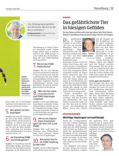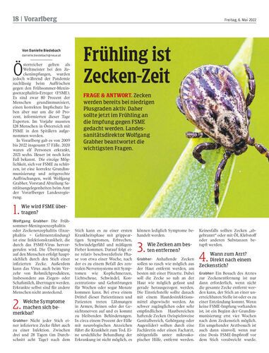 Frage & Antwort. Zecken werden bereits bei niedrigen Plusgraden aktiv. Daher sollte jetzt im Frühling an die Impfung gegen FSME gedacht werden. Landessanitätsdirektor Wolfgang Grabher beantwortet die wichtigsten Fragen.