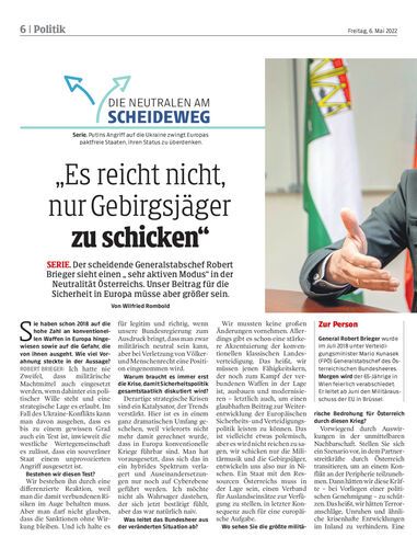 SERIE. Der scheidende Generalstabschef Robert Brieger sieht einen „ sehr aktiven Modus“ in der Neutralität Österreichs. Unser Beitrag für die Sicherheit in Europa müsse aber größer sein. Von Wilfried Rombold