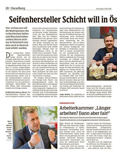 Von Lochau aus soll die Marktpräsenz des tschechischen Seifen- und Waschmittelherstellers Hirsch nicht nur in Österreich sondern auch in Deutschland erhöht werden.