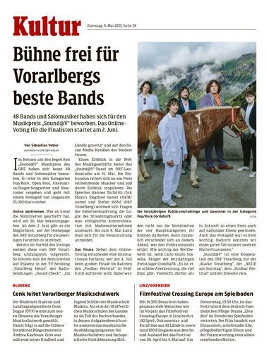 48 Bands und Solomusiker haben sich für den Musikpreis „Sound@V“ beworben. Das Online-Voting für die Finalisten startet am 2. Juni.