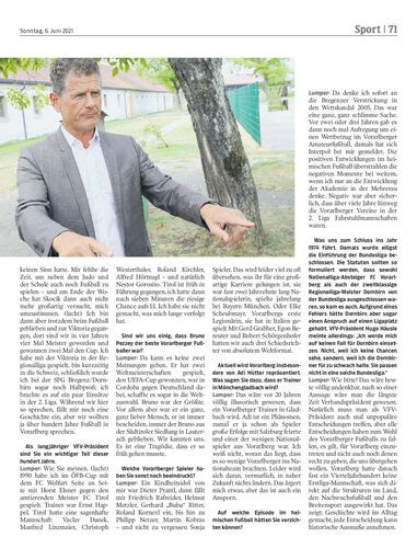 Interview. Im Talk zum ersten Teil der Auszüge aus der VFV-Chronik spricht Verbandsboss Horst Lumper über seine Highlights im Vorarl-berger Fußball. Mit persönlichen Anekdoten aus alten Zeiten.