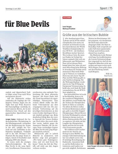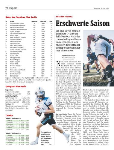 Die Blue Devils empfangen heute (14 Uhr) die Telfs Patriots. Nach der coronabedingten Pause im vergangenen Jahr mussten die Footballer einen personellen Aderlass hinnehmen.