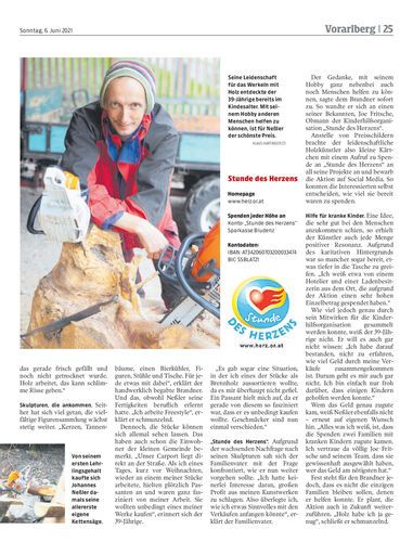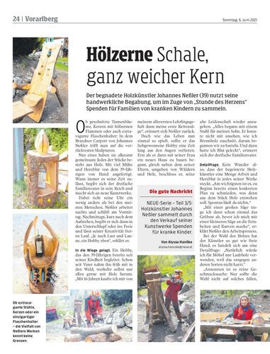 Der begnadete Holzkünstler Johannes Neßler (39) nutzt seine handwerkliche Begabung, um im Zuge von „Stunde des Herzens“ Spenden für Familien von kranken Kindern zu sammeln.