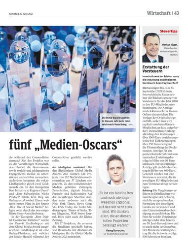Bei der Verleihung der Global Media Awards räumt das Vorarlberger Unternehmen groß ab und gewinnt fünf Gold-Awards, zwei Silber-Awards und drei Bronze-Awards.