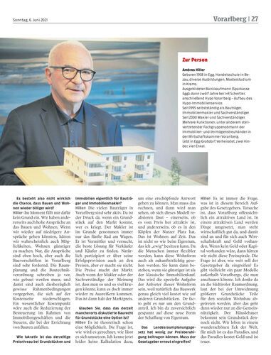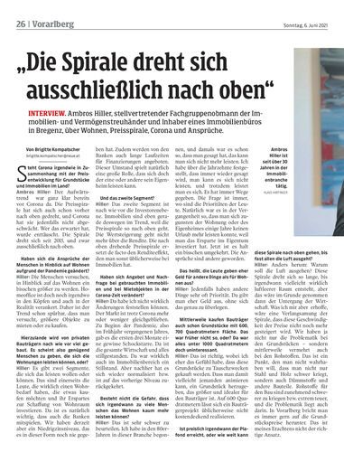 Interview. Ambros Hiller, stellvertretender Fachgruppenobmann der Immobilien- und Vermögenstreuhänder und Inhaber eines Immobilienbüros in Bregenz, über Wohnen, Preisspirale, Corona und Ansprüche.