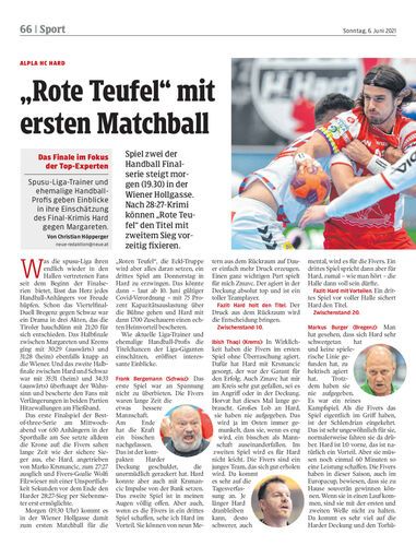 Spiel zwei der Handball Finalserie steigt morgen (19.30) in der Wiener Hollgasse. Nach 28:27-Krimi können „Rote Teufel“ den Titel mit zweitem Sieg vorzeitig fixieren.