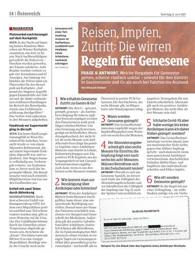 FRAGEN & ANTWORTEN. Welche Vorgaben für Genesene gelten, scheint vielfach unklar – sowohl für den Eintritt in Gastronomie und Co. als auch bei Fahrten ins Ausland. Von Michael Kloiber