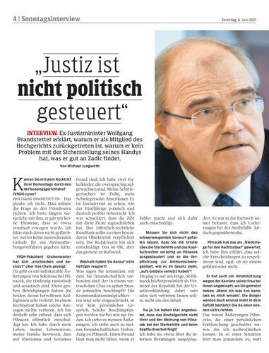 Interview. Ex-Justizminister Wolfgang Brandstetter erklärt, warum er als Mitglied des Hochgerichts zurückgetreten ist, warum er kein Problem mit der Sicherstellung seines Handys hat, was er gut an Zadic findet. Von Michael Jungwirth