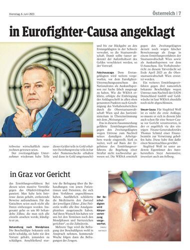 In der Causa Eurofighter gibt es nun eine Anklage gegen den Manager und Investor Siegfried Wolf, ehemals CEO von Magna International. Auch ein zweiter Unternehmer wird angeklagt.