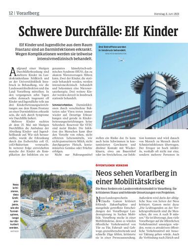 Elf Kinder und Jugendliche aus dem Raum Frastanz sind an Darminfektionen erkrankt. Wegen Komplikationen werden sie teilweise intensivmedizinisch behandelt.